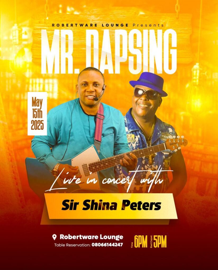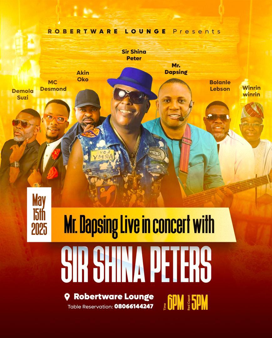 On Thursday, May 15th, 2025, fans in Ondo were treated to a night of music and pure entertainment as Mr. Dapsing and music legend Sir Shina Peters performed live at Robertware Lounge. The evening kicked off around 5 p.m., with fans gathering to enjoy performances from an exciting lineup including Sir Shina Peters, Mr. Dapsing, Demola Suzi, MC Desmond, Akin Oko, Bolanle Lebson, and Winrin Winrin.