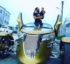 Nigerian Highlife singer, Flavour carries cute baby in a weird looking car. The Enugu State born musician uploaded on his instagram page picture of him carrying his cute baby. Picture below: