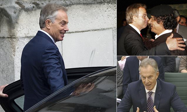 Both men faced lengthy spells in jail and torture before playing key roles in the overthrow of the regime. Mr Belhadj says British agents handed questions to his torturers to ask him while he was being mistreated. Mr al Saadi was beaten, given electric shocks and told he faced execution. He has secured a £2.2million payoff from the British government after suing over his case. Two days after the fax about him was sent Mr Blair arrived for the ‘Deal in the Desert’ which led to lucrative contracts being signed by BP. We live with ‘the pain’ of wars in Iraq and Afghanistan – but we can’t opt out of the battle with terrorism, says Tony Blair . Mr Blair made the comments the night before he appeared before a committee of MPs ready to grill him about Britain’s role in the 2011 overthrow of the Gaddafi regime in Libya.